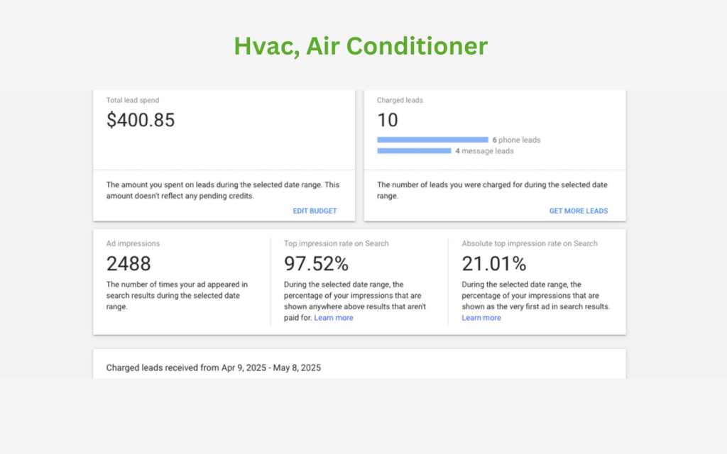 We provide comprehensive performance reports that break down the success of your local service ads. These reports cover key metrics like impressions, click-through rates, lead generation, and overall ROI, giving you a transparent view of your campaign’s impact. We also provide actionable insights that help guide strategic adjustments, allowing you to continuously improve your ad performance. Our reports empower you to make informed decisions that maximize ad success over time