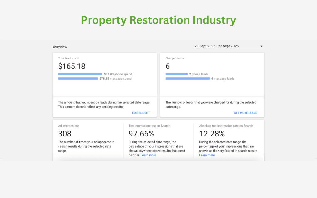 We optimised their LSA profile to capture nearly every search in their area, resulting in high-value restoration leads.